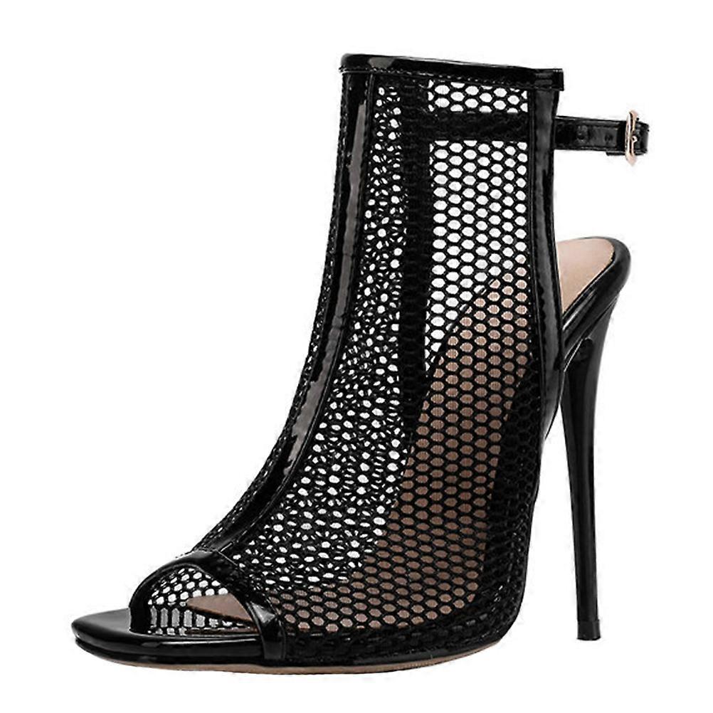 High-Heeled Sandals Shoes for Workplace Black Pu Rubber Material Including Peep-Toe Design 1 Pair