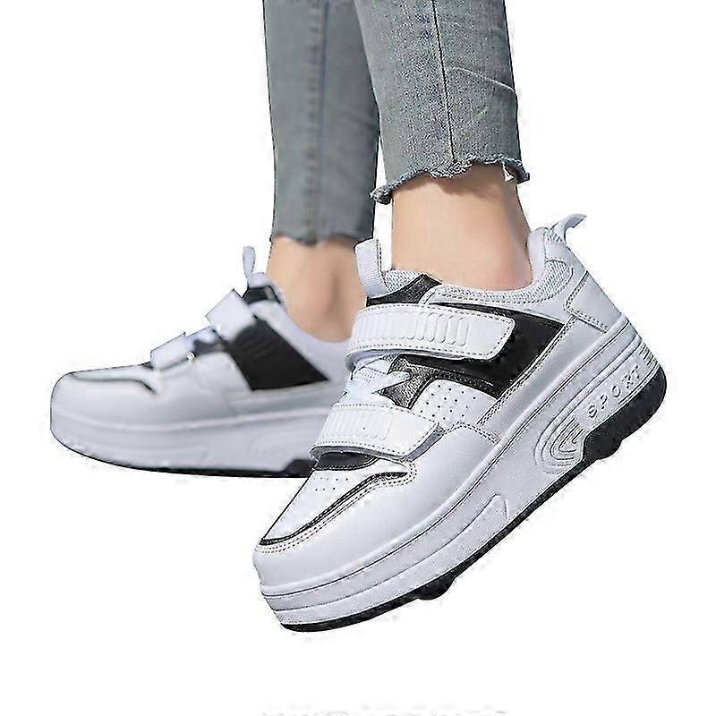 Girl's Roller Shoes With Hook & Loop Fastener, Detachable Wheel Skate Sneakers