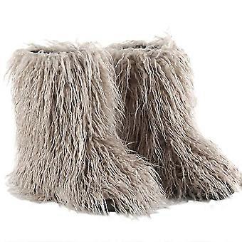 Real Beach Wool Fur Boots For Women Fuzzy Fluffy Furry Round Toe Suede Winter Comfy Plush Warm Short Snow Bootie Flat Shoes Mid-calf Boots Outdoor Ind