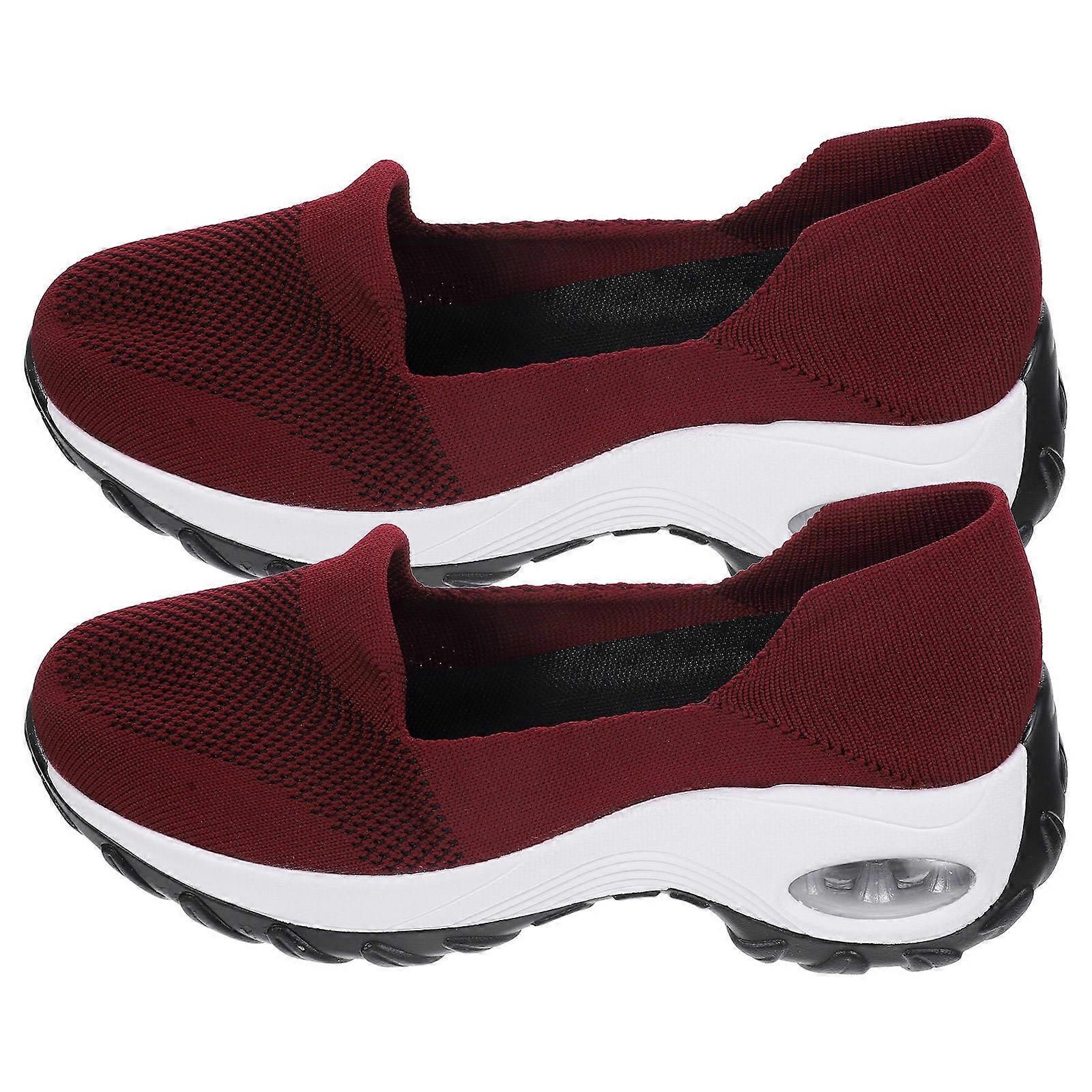 Women Shoes Shallow Mouth Four Seasons Use Dark Red Breathable Function 1 Pair