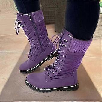 أحذية نسائية متوسطة العجل أنثى الدانتيل حتى أحذية القطن الشتاء أنبوب مرتفع بالإضافة إلى المخملية الأمامية الدانتيل حتى أحذية الثلج أحذية نسائية بالإضافة إلى الحجم