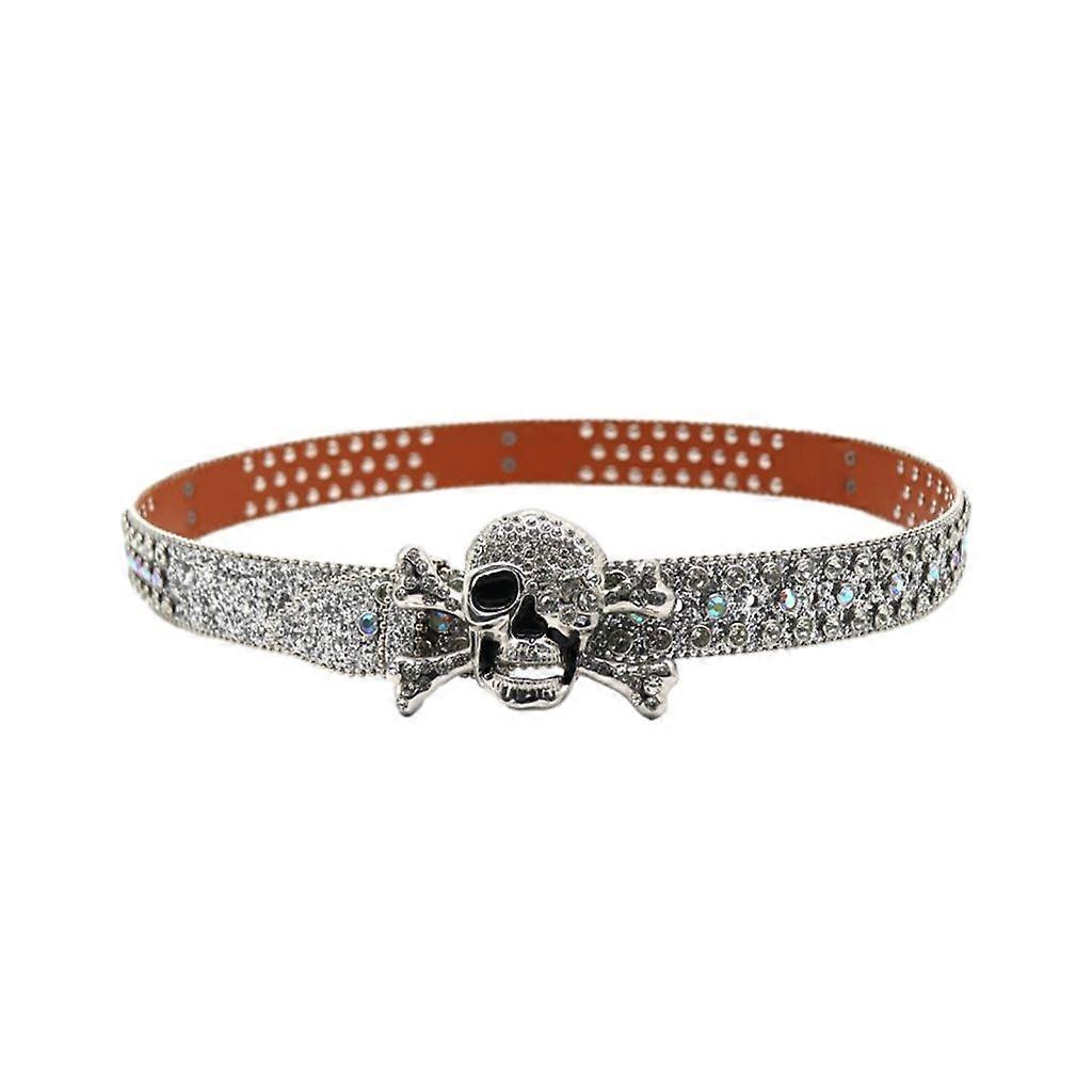 Diamond Skull Buckle Belts for Street Cultures Enthusiasts Sequins Waist Belt
