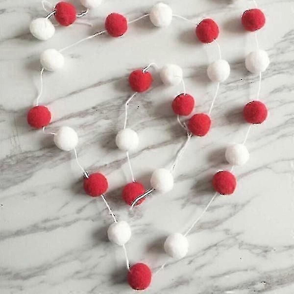 (Red&White) Fluffy Felt Ball Pompom Garland String Props Living Room Hanging Art Decoration