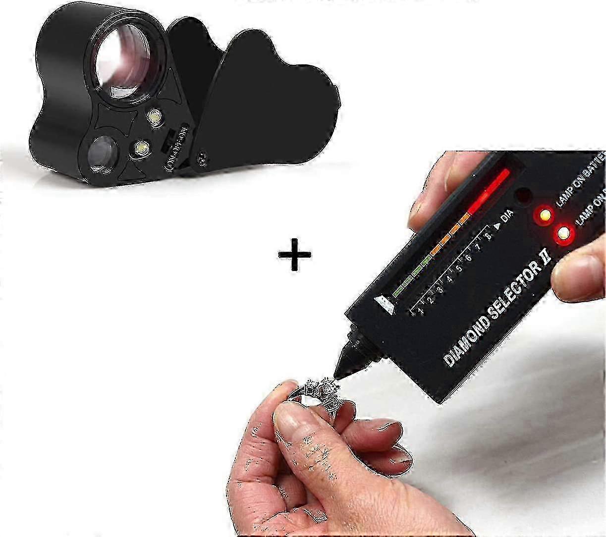 Jeweler Tool Kit Diamond Picker - Portable Diamond Tester + 30x 60x Foldable Illuminated Jewelers Eye Magnifier Magnifier With Bright Led Light .
