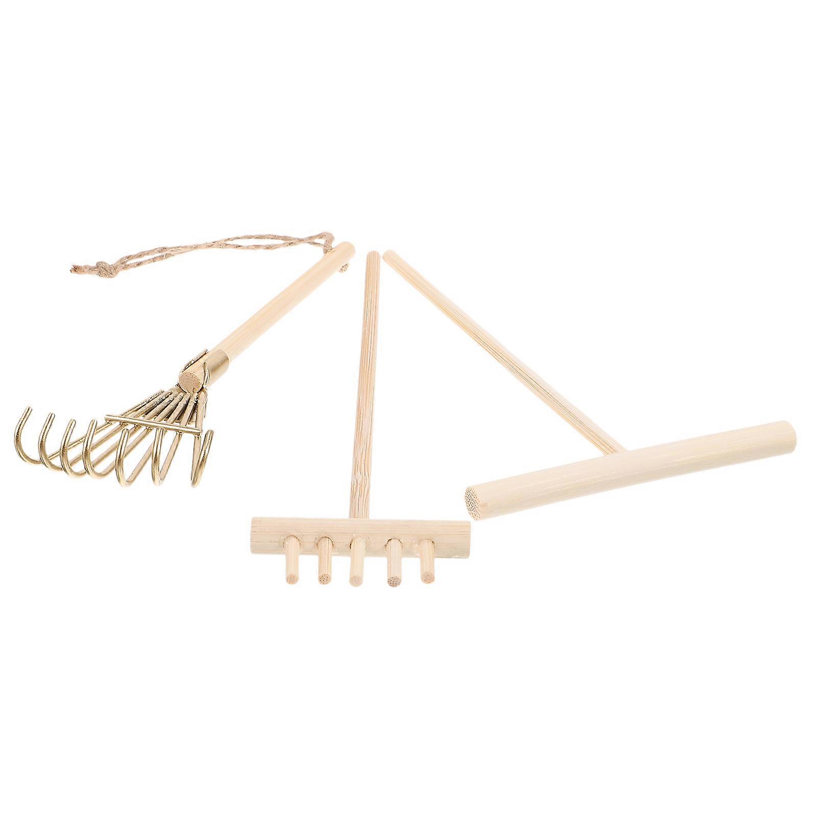Sand Tools Mini Wood Rakes For Kids Indoor Decoration Assorted Color Featuring Creating Patterns 3Pcs