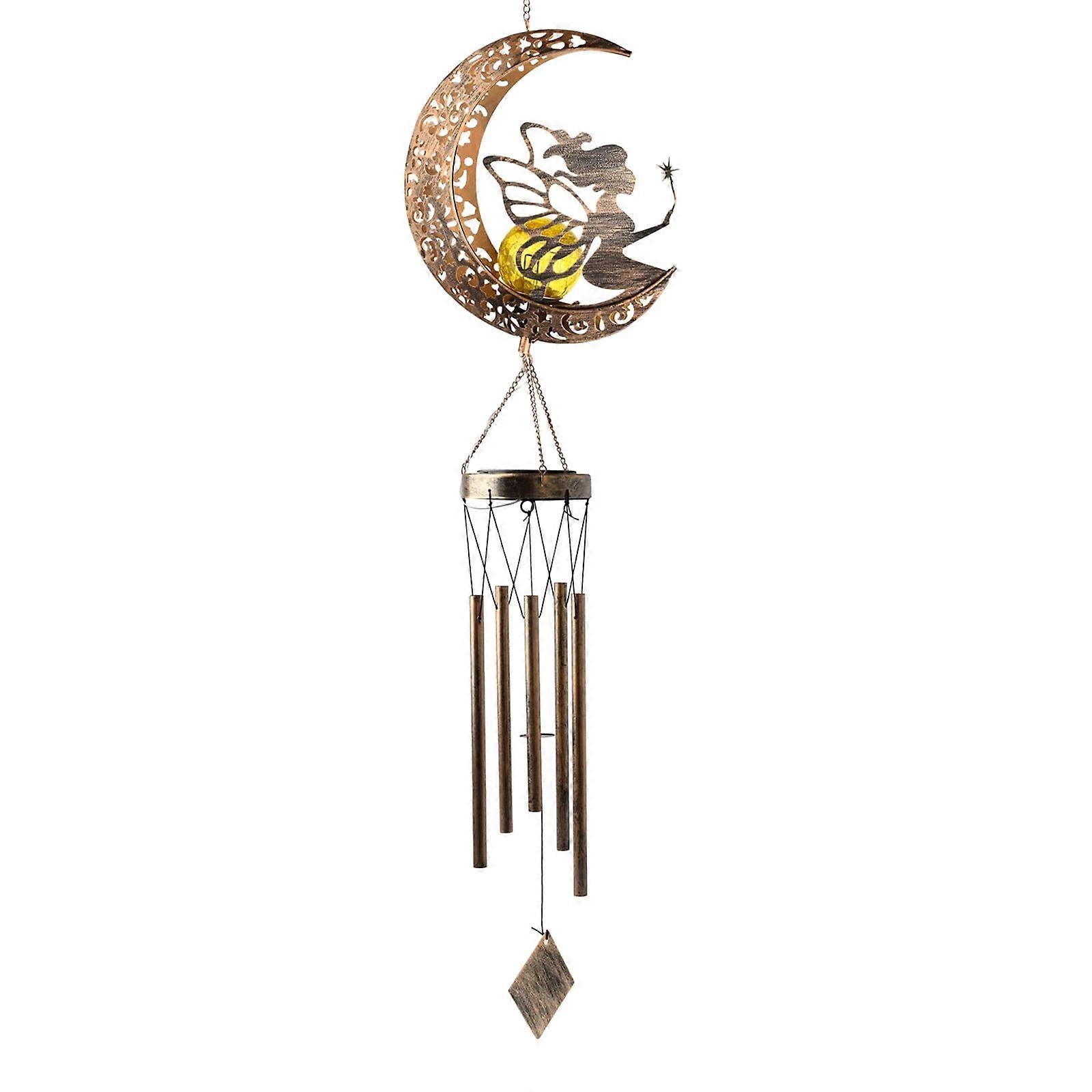 ["Features:\nSolar windchime: In the opening air, it will charge during the day and glow automatically at night, more convenient to use.\nSuitable occasions: for Ideal for decorating courtyard, garden, backyard, front porch and bedroom to make your life full of fun.\nBeautiful shape: Hollow star moon and fairy combination wind chime is charming.\nEasy to hang: Easy to use wind chimes and convenient to hang on, no wiring or external electricity required for use.\nGreat gift: Best gift for wedding anniversary, children's birthday, mothers' birthday, mother's day, father's day, Thanksgiving day, Valentine's day and Christmas.\n\nSpecification:\nMaterial: Metal\nFolding size: approx.22x22cm/8.66x8.66in\nColor: As the picture shown\nQuantity: 1Pc\n\nNote:\nPlease allow 0-1cm error due to manual measurement. pls make sure you do not mind before you bid.\nDue to the difference between different monitors, the picture may not reflect the actual color of the item. Thank you!\n\nPackage Contents:\n1xWind Chime Light (other accessories demo in the picture is not included.)"]