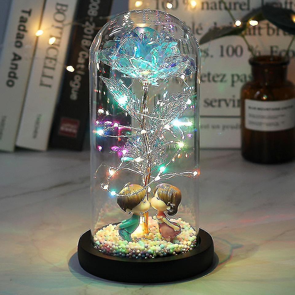 Led Enchanted Galaxy Rose Eternal 24k Gold Foil Flower With Fairy String Lights In Dome For Christmas Valentine"s Day Gift