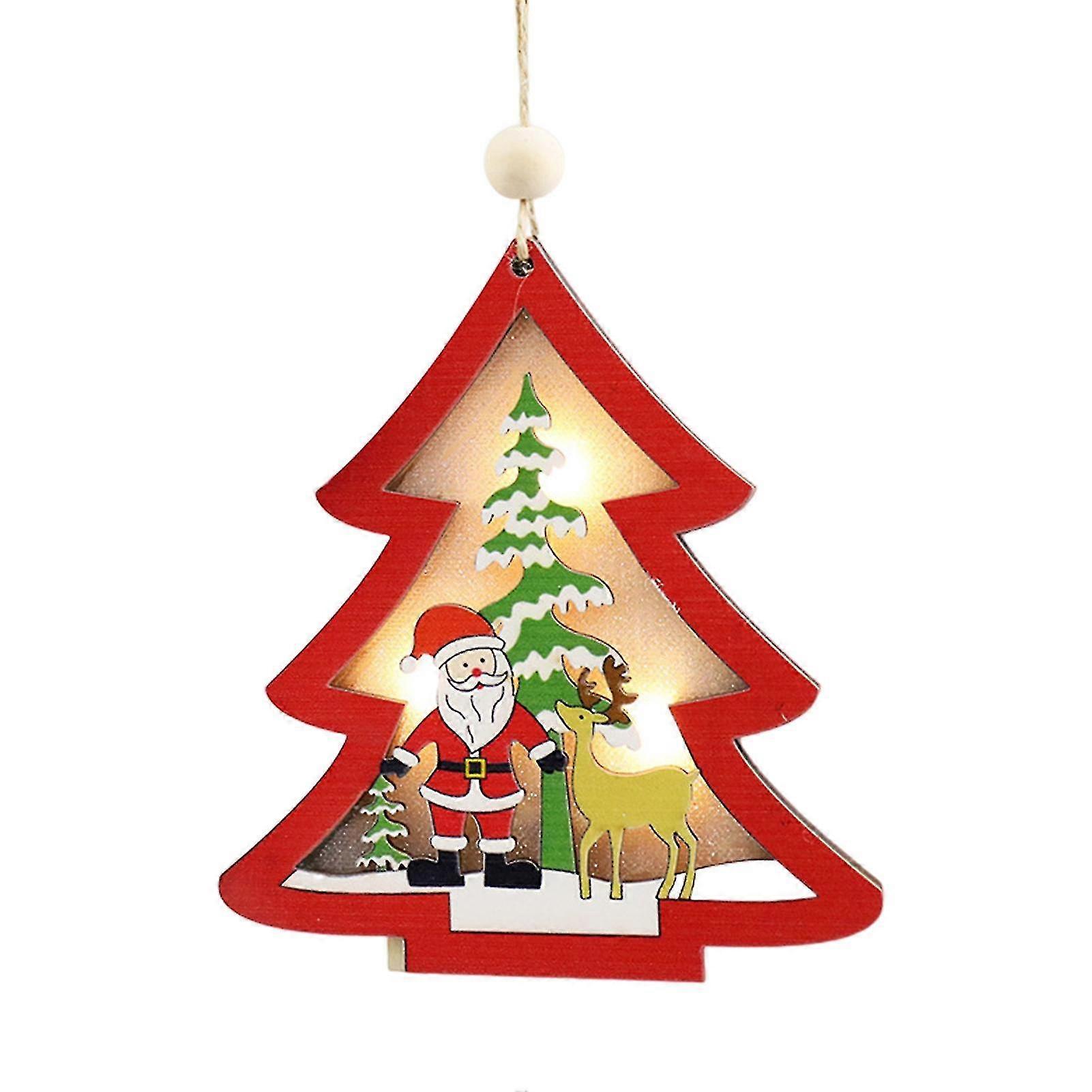 Led Christmas Star Bell Christmas Tree Shape Christmas Tree Ornament Christmas Wooden Pendant Holiday Glowing Pendant Decoration