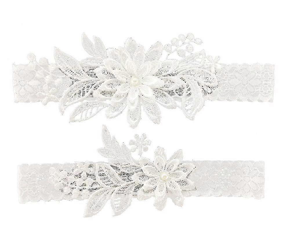 Wedding Garters For Bride Daisy Lace Bridal Garter Hand Sewn Faux Pearls Garter Set 2 Pieces, White, One Size