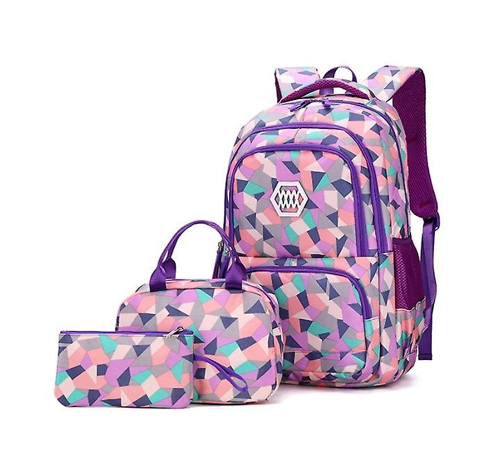 (purple)girl Geometric Printed Primary Junior High University School Bag Bookbag Backpack