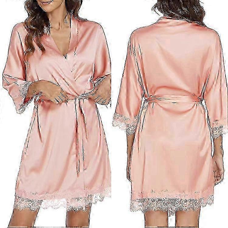 Silk Robes for Women Lace Trim Short Satin Sleepwear Bride Robe