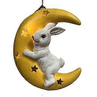 Rabbit Moon Hanging Figurine Solar Powered Lovely Bunny Decoration for Garden Tree Outdoor Decoration