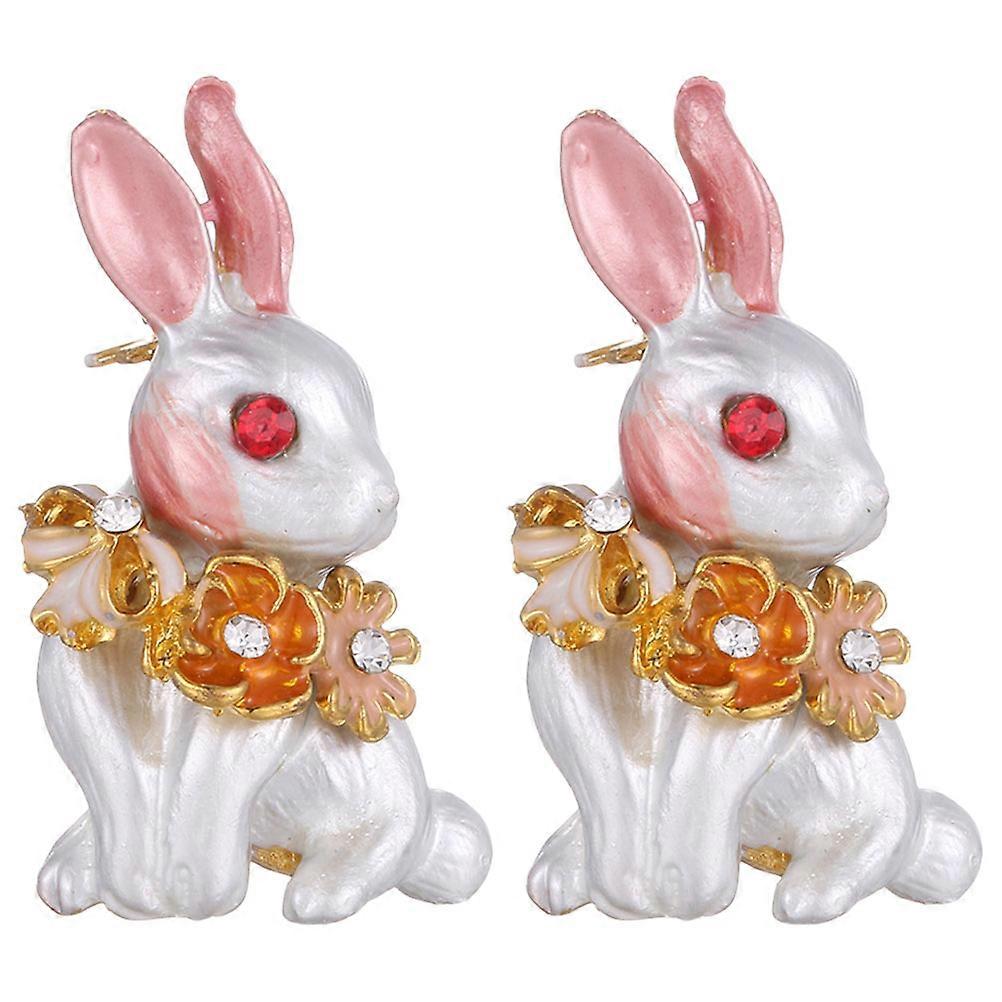 Rabbit Pin Brooch Pin Women Elegant Jewelry For Formal Events 3.50X1.90X1.00CM Alloy Enamel 2Pcs