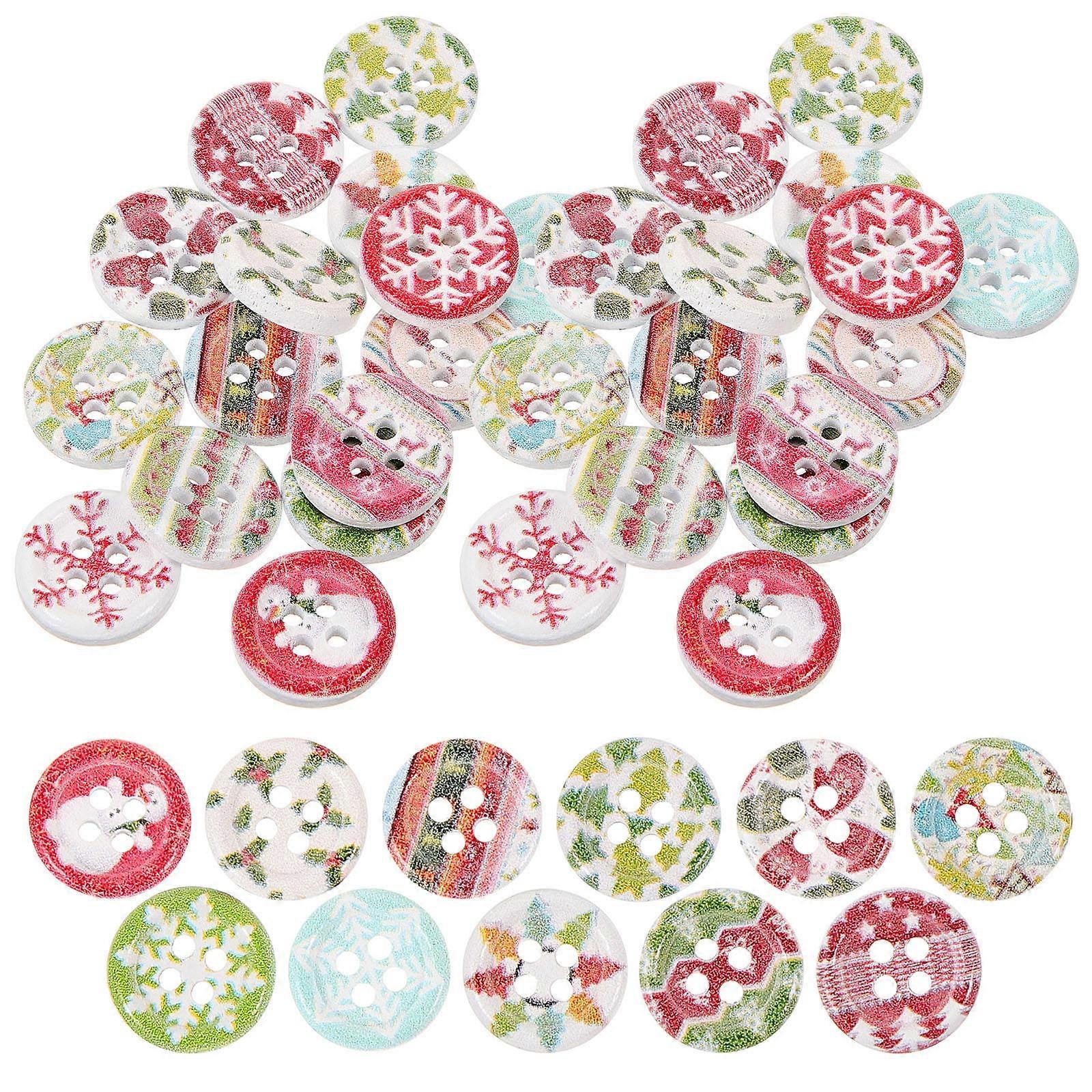 Decorative Sewing Wood Buttons for Clothing Christmas Projects Assorted Color Wood 100Pcs