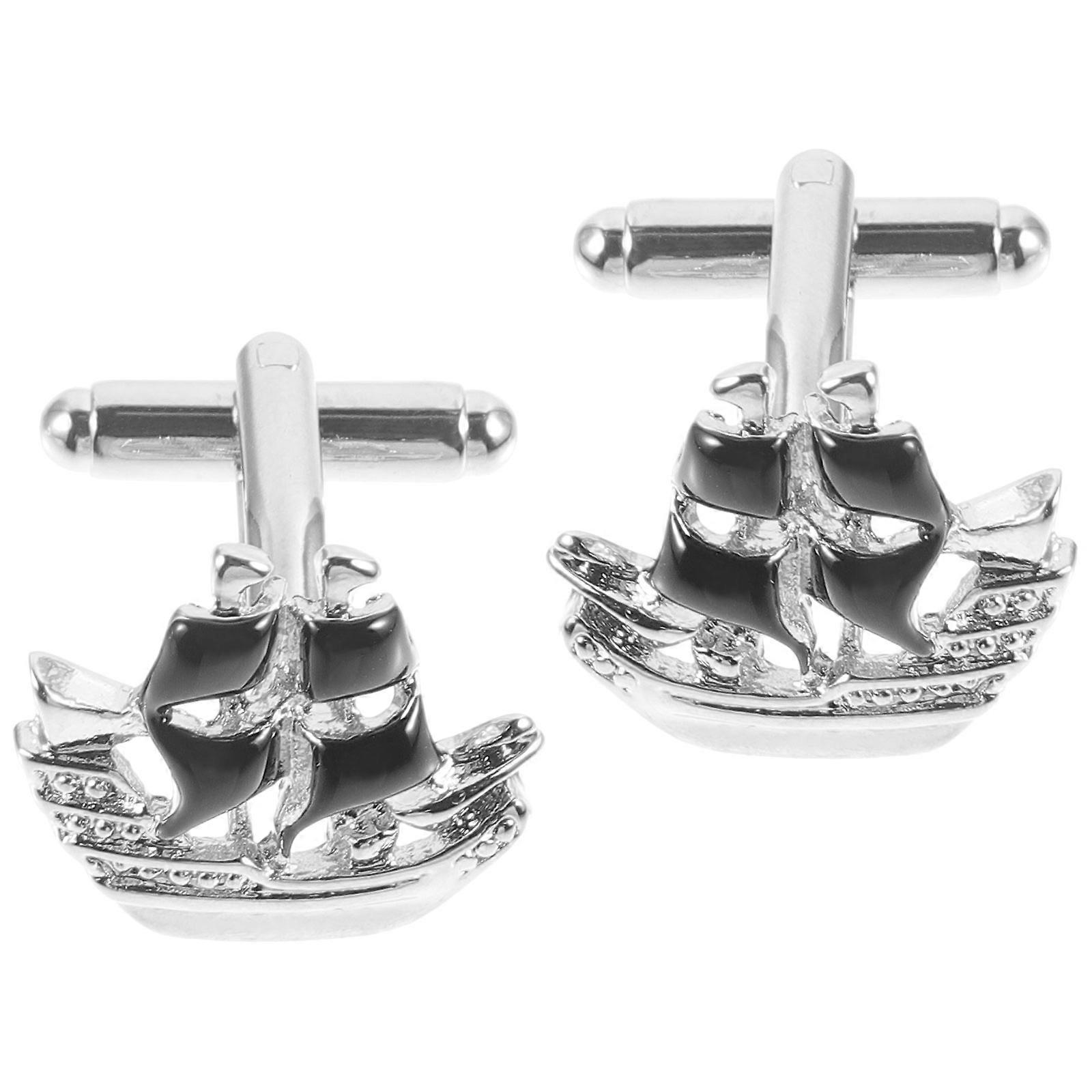 Suit Cufflinks Metal Cufflinks Sailboat Shape Cufflinks Wedding Decorative Shirt Cufflinks Silver 2.5x2cm Firm Attachment 1 Pair