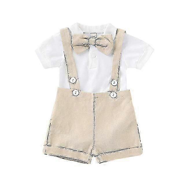 Fashion Baby Boys Baptism Outfit Infant Wedding Gentleman Set Birthday Party Formal Christening Suit Suspender Bow Tie Romper