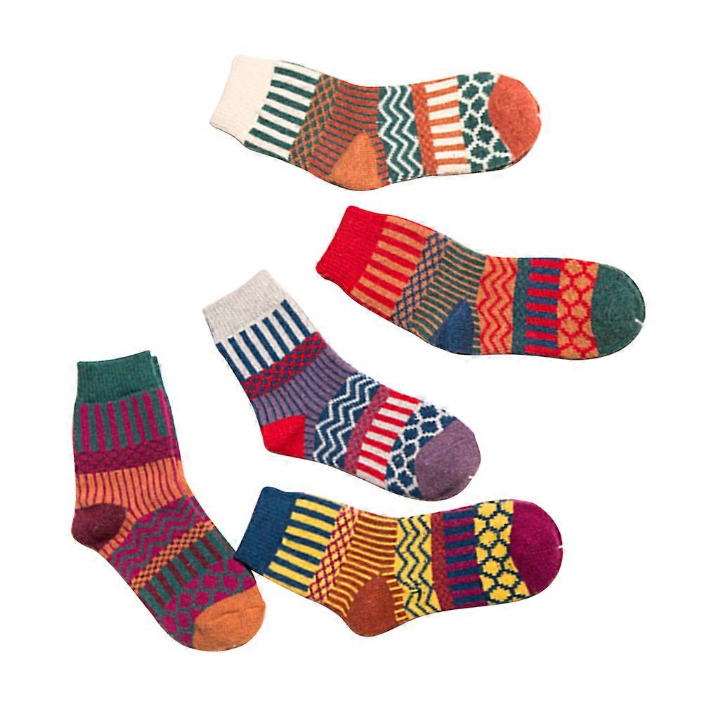 Fashion Socks Vintage Ethnic Style Warm Wool For Women Autumn Winter 5 Pairs
