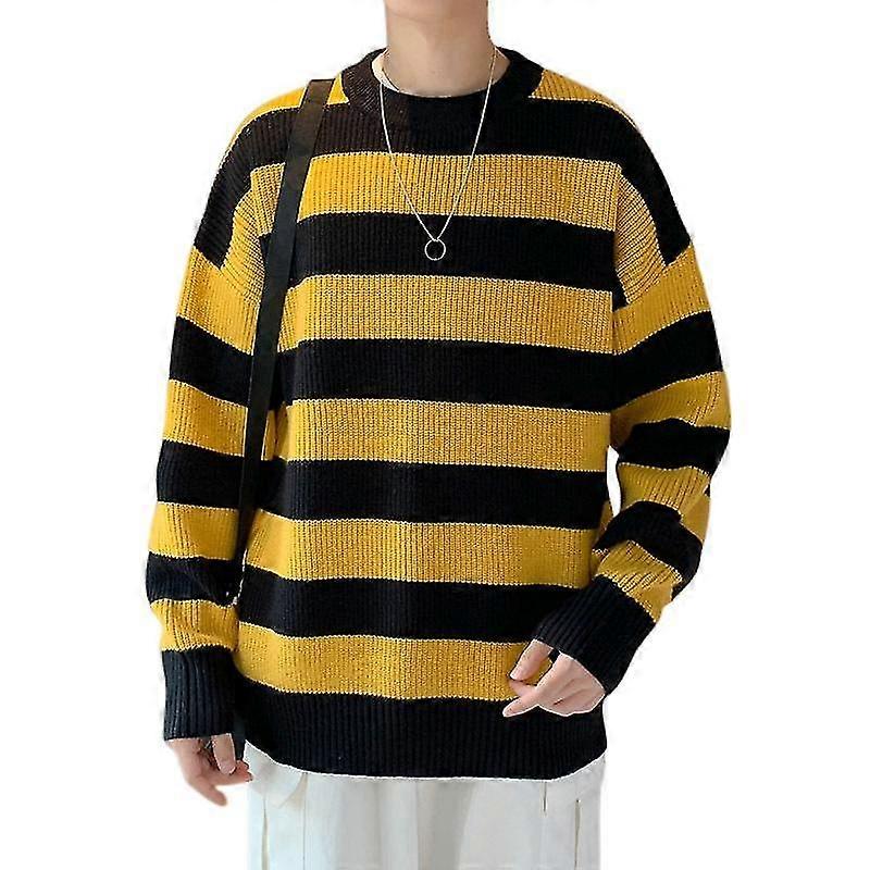 Fashion Men Winter Stripe Thickened Sweater Round Neck Tops
