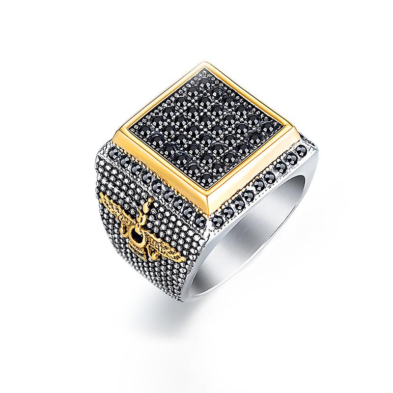 Fashion Retro Big Ring Front Square For Men Inlaid Black Stone Crystal Eagle Pattern Ring Accessories Party Jewelry Size8-12