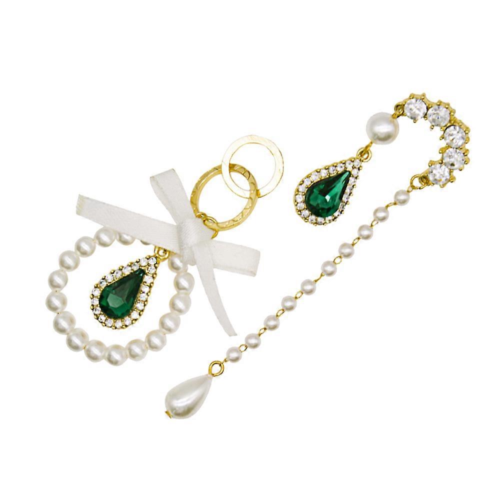 Fashion Earbob Earrings For Women Daily Wear Assorted Color Asymmetric Pearl Ribbon Bow Design 1 Pair