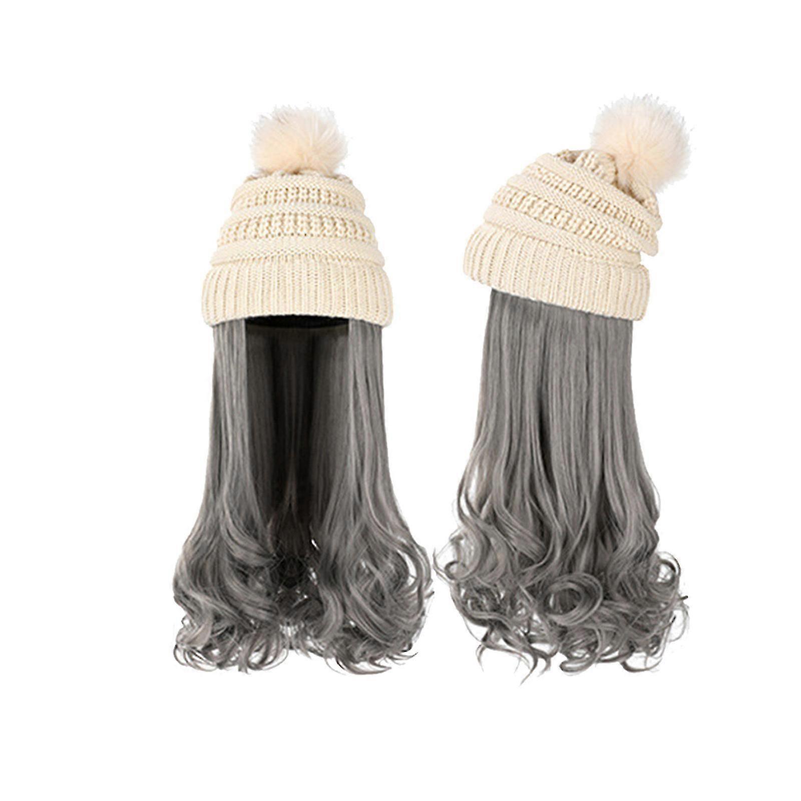 Fashion Long Curly Hair Hat Wig One Knitted Cap