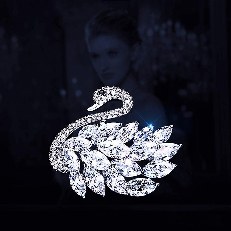 Fashion Crystal Swan Brooch Rhinestone Animal Brooch For Women Dress Lapel Pin
