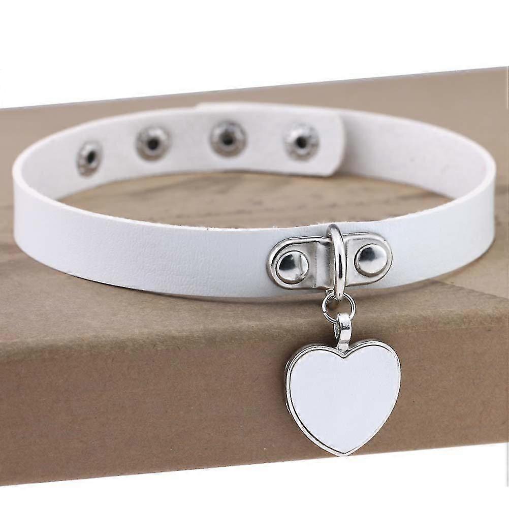 Fashion Cool Rock Style Steampunk Punk Goth Heart-shape Pendant Link Pu Leather Collar Choker Necklace(white)