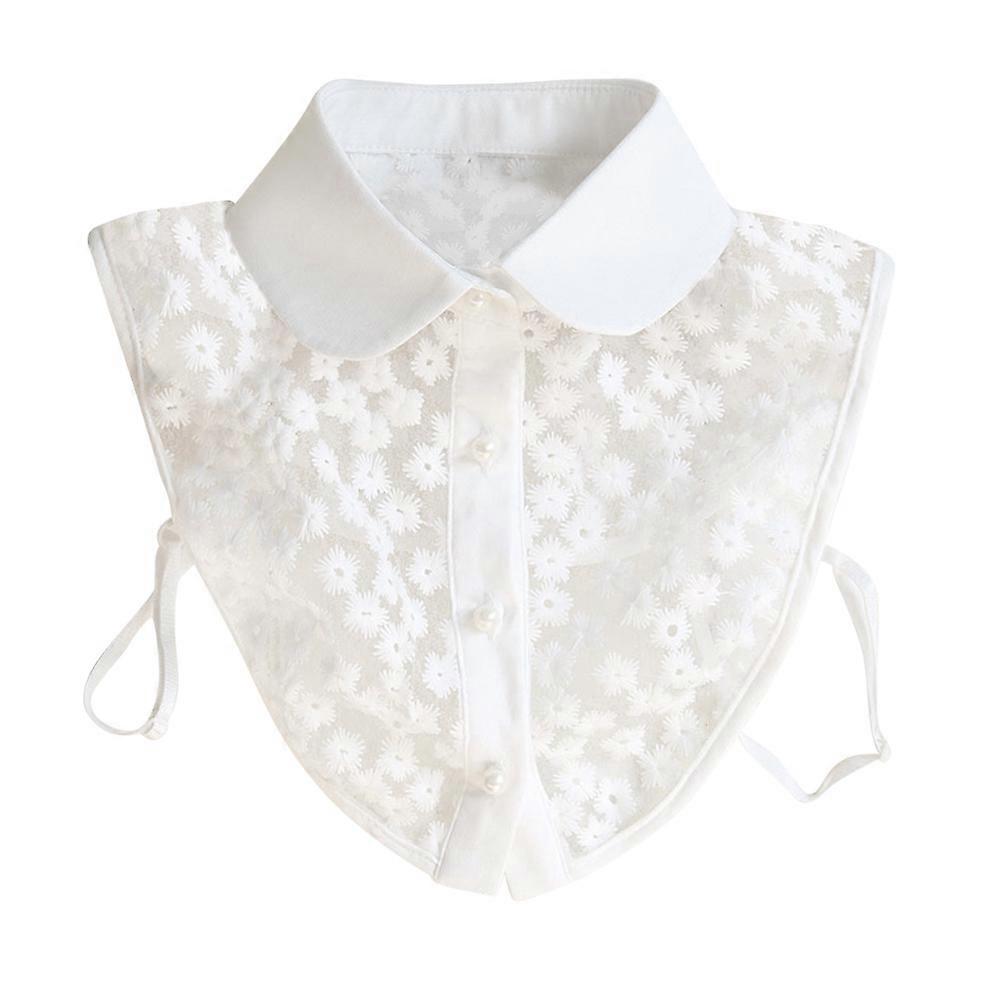 Fashion Women Floral Neckline Detachable Collar Half Shirt Blouse Collar Cotton Lace Fake Collar Clothes Accessory for Women (White)
