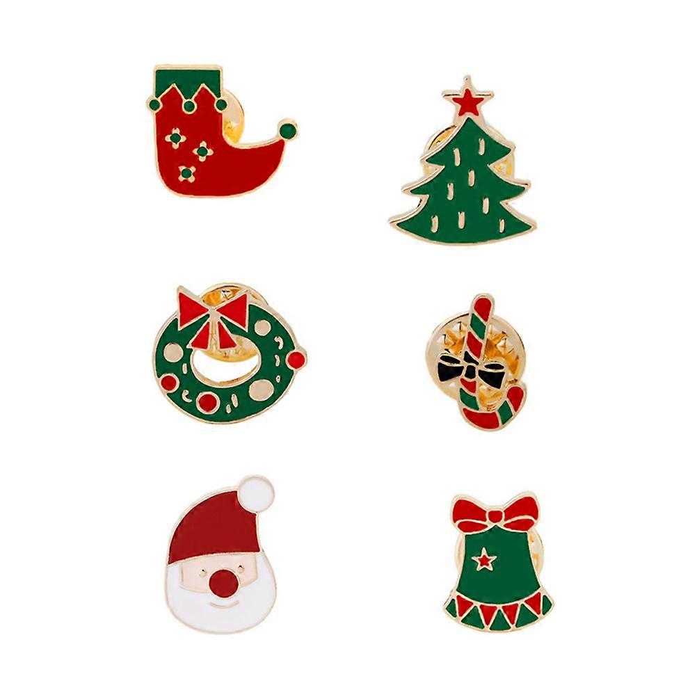 Fashion Style Christmas Brooches Cartoon Festive Enamel Shirt Sweater Clips Employee Benefits Decoration 6Pcs