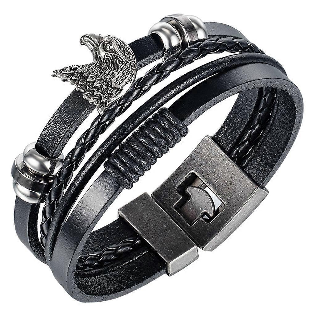 Trendy Bracelets Eagle's Head Wrist Chain Men's Accessory Black Leather Durable 1Set