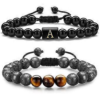 Initial Beaded Bracelets For Men, 8mm Tiger Eye Lava Rock Stone Handmade Mens Letter Obsidain Braceletstress Relief Yoga Beads Bracelets Adjustable An