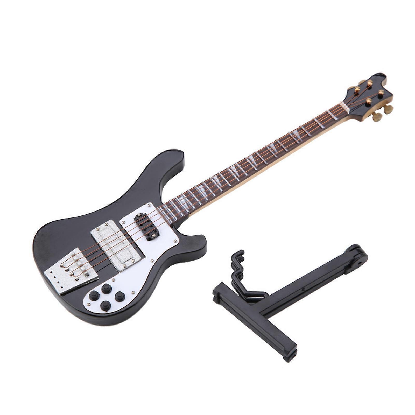 Black Miniature Bass Guitar Replica with Stand and Case Instrument Model Ornaments Gift