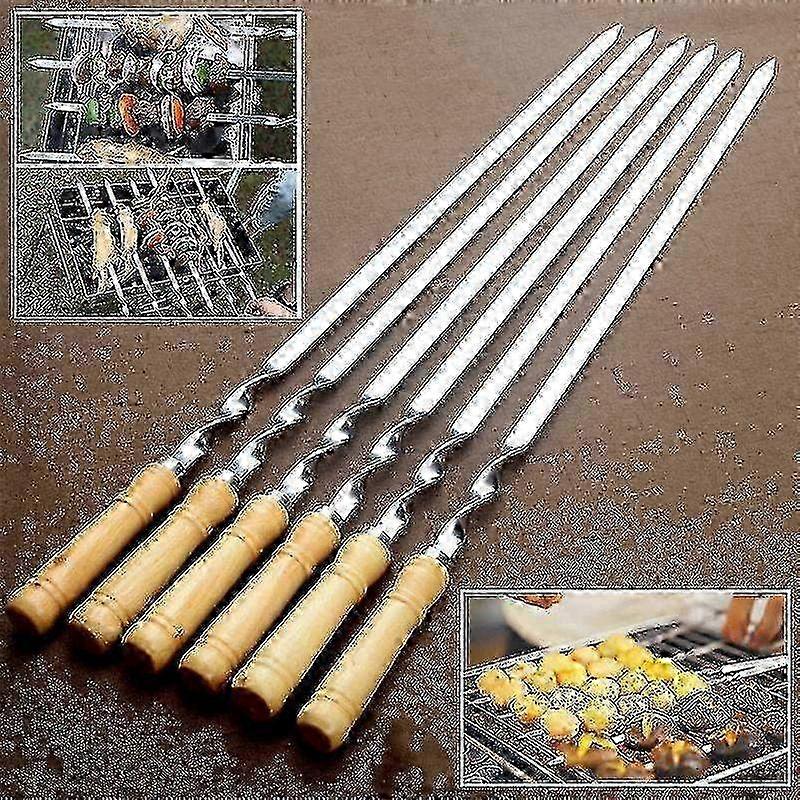 Stainless Steel BBQ Flat Skewers - Set of 6 - Long Handle Barbecue Stick SZRH A-VH