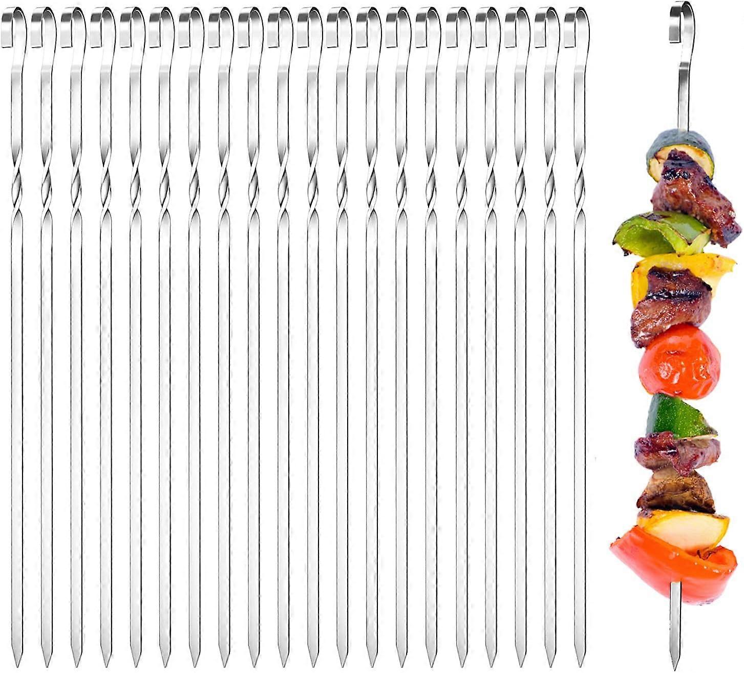 Kebab Skewers Stainless Steel BBQ Grilling Skewers 35cm Reusable Shish Kabob Skewers Dishwasher Safe Grill Tools for Outdoor Barbecues, Family Gatheri