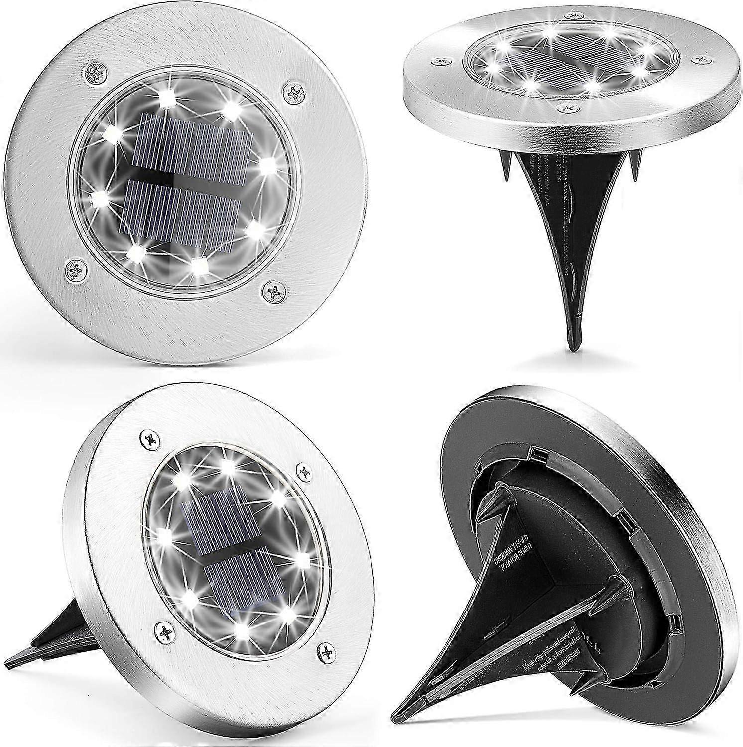 [IMPROVED QUALITY]:The performance of our solar ground lights have been greatly improved. These outdoor solar lights are more waterproof and have more light duration. At the same time, the strength of the transparent plastic cover is optimized to make it more pressure resistant. [PROVIDE USEFUL LIGHT]:Solar disk lights provide perfect lighting for your courtyard, gardens, sidewalks, lawns, streets, corridors and so on. It is beautiful and doesn't occupy space. Just place it outside where you need light at night. [HIGHLY PHOTOSENSITIVE]:Our upgraded solar deck light is highly photosensitive, More human than others, greatly increasing the effective duration of the light, reducing unnecessary light, so that all the generated light can be fully utilized. [SOLAR LIGHTING]:There is no need for other wires or batteries, and it is easy to install. After placement, these solar path lights will automatically charge during the day and turn on at night without human operation.In the case of sufficient electricity, it can illuminate for 8-10 hours. Please be careful not to put it in shadow or under other night light sources. [AFTER-SALES SERVICE]:If you have any questions with the products you receive, please contact us in time. Our professional team will help you solve it and give you better purchase and use experience. Provide More Light for Your Yard, Trail, and Garden at Night These disk lights can be used outdoors in any place that needs night light Tips: 1.Please make sure to turn the switch on the first time you use it, otherwise, it won't recharge even in sunny conditions. 2.Please be careful not to install it under shade, otherwise it will affect its charging. 3.If the weather is cloudy and rainy all the time, it will affect the lighting duration at night, which is a normal phenomenon of all solar lights products. 4.These solar in-ground lights are waterproof, but please do not intentionally soak them in water