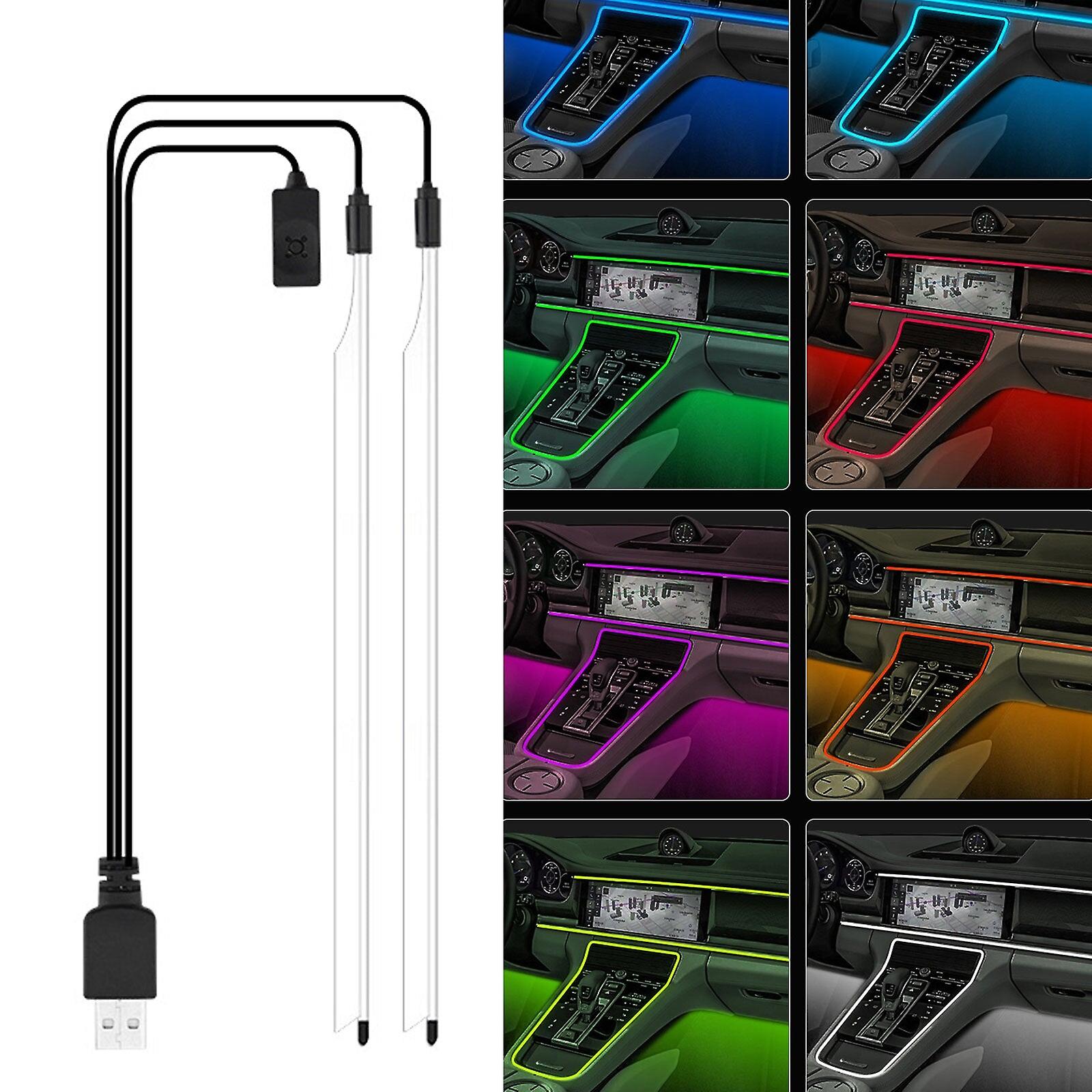 Car Interior Lights Decorative Ambient Lights Neon Rgb Led Strips 1/2 In 1 Bluetooth App Controlled Usb Fiber Optic Lights 5v