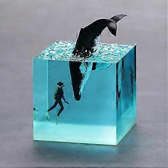 أضواء ليلية للمحيط من الراتنج لسطح المكتب ، مصباح راتنج المحيط LED المكعب ، ديكور غرفة مصباح غواص القرش لسطح المكتب ، غرفة المعيشة ، رف الكتب