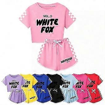 Kids White Girls Foxes T-shirt Short Sleeve T-Shirt + Shorts Set
