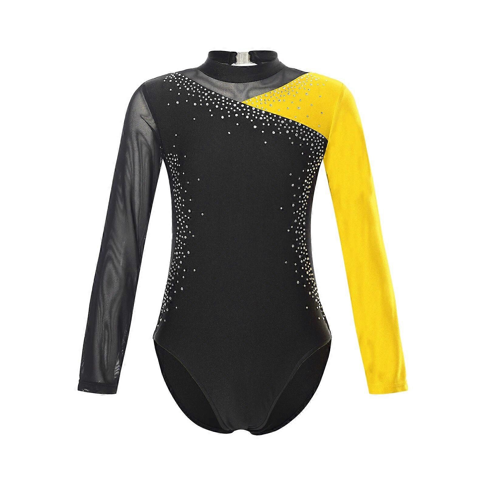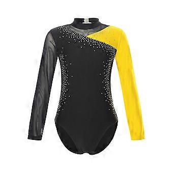 Kids Rhythmic Gymnastics Jumpsuit for Girls Teens Patchwork Ballet Dance Leotard Dancewear Long Sleeve Yoga Skating Bodysuit