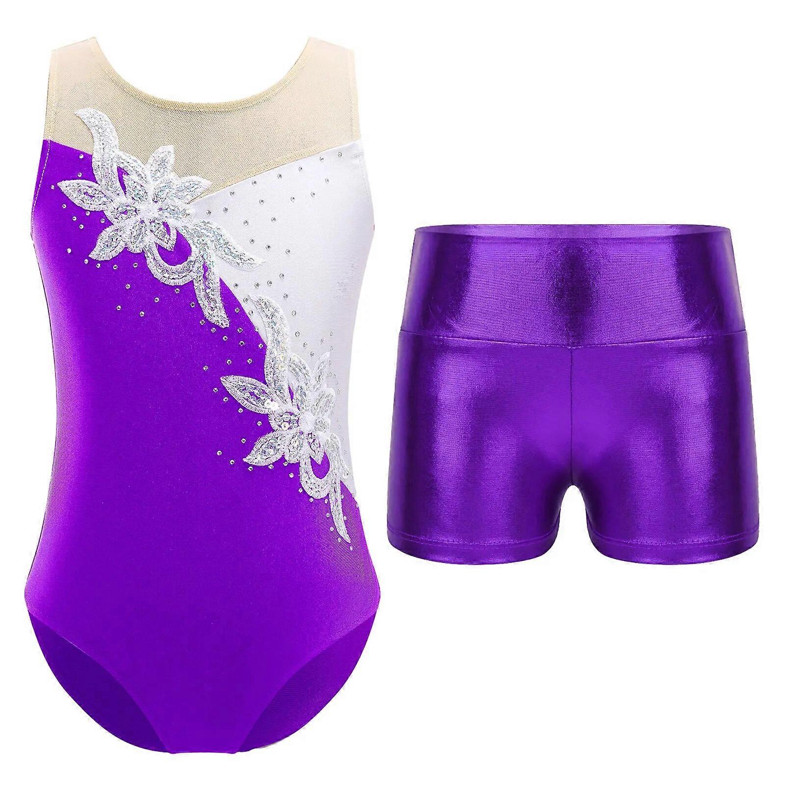 Kids Girls Ballet Dance Outfits Sleeveless Gymnastics Leotard + Shorts Performance Dancewear Children Figure Skaitng Jumpsuit