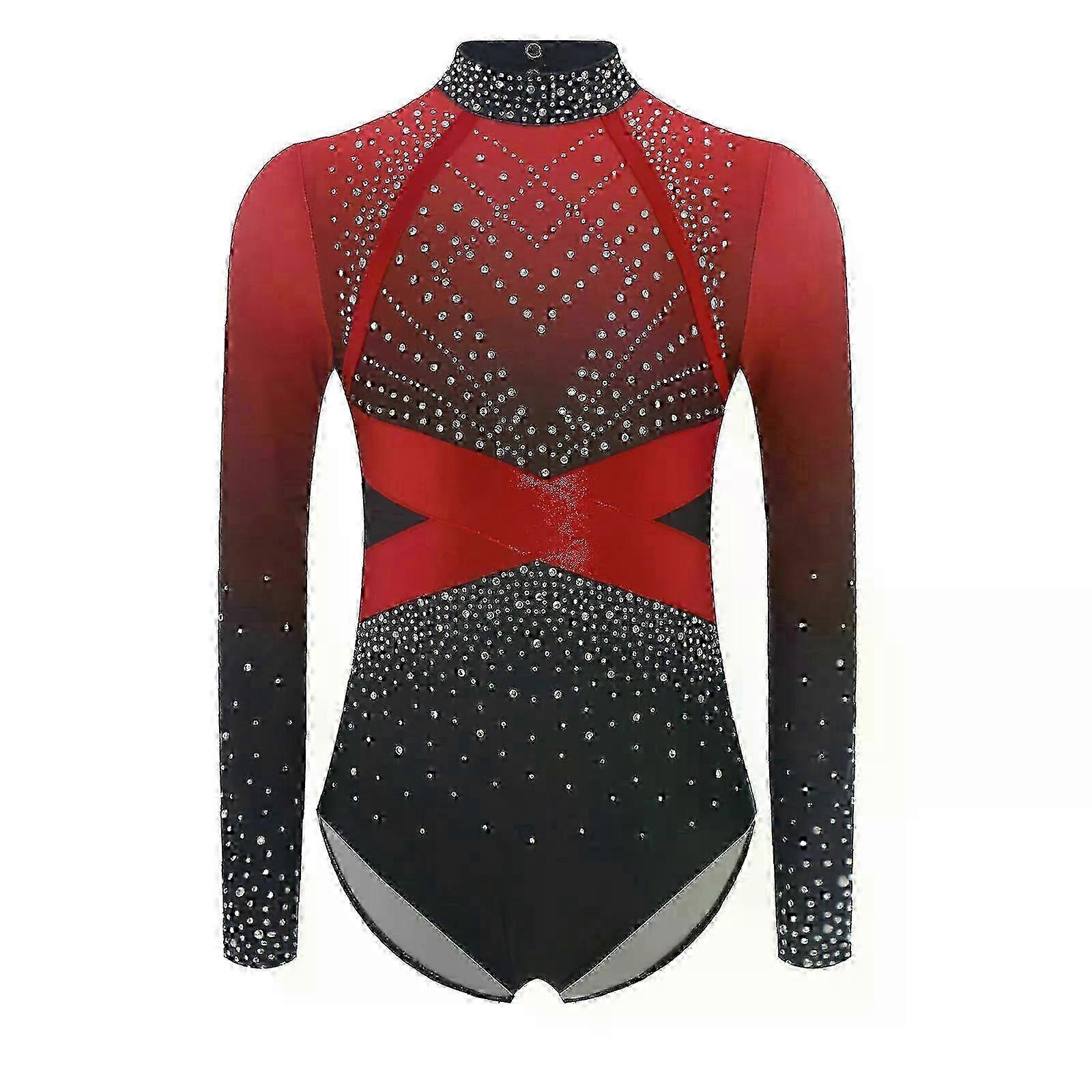 Kids Girls Shiny Rhinestone Figure Skating Leotard Long Sleeve Ballet Dance Gymnastics Acrobatics Bodysuit for Stage Performance