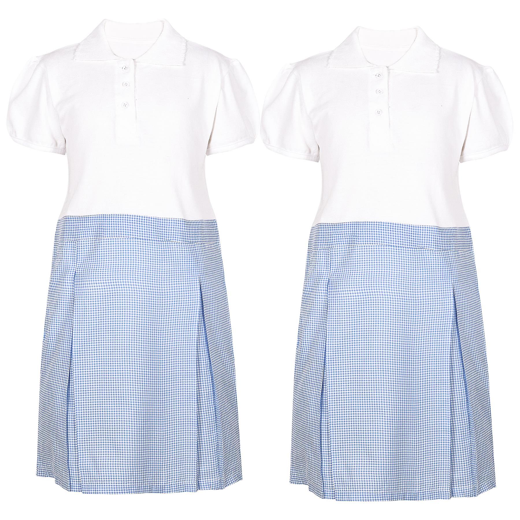 Kids Girls 2 Pack School Uniform Dress Gingham Pleated Comfortable Summer Dress