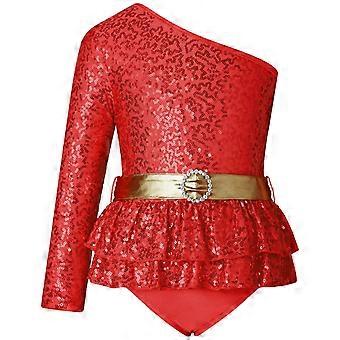 Kids Long Sleeve Sequins Ballet Dance Bodysuit Gymnastics Leotards for Girls Children Figure Skating Jumpsuit Teens Dancewear