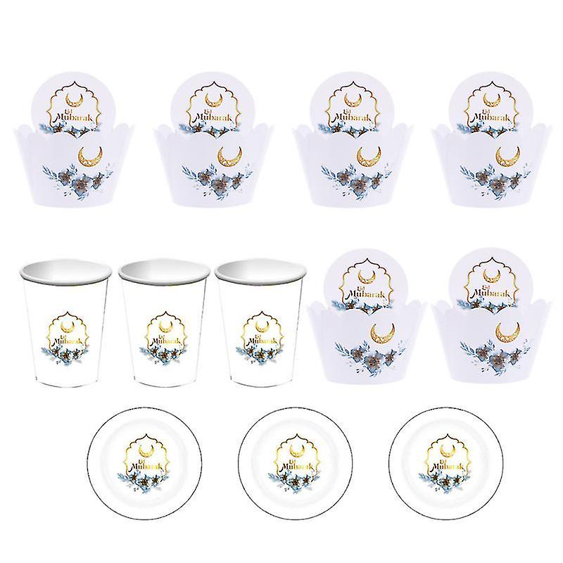 19X19x0.2cm White Party Supply Kits 1 Set Ramadan Kareem Disposable Cups Festival Party Paper Plate