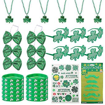 25X20x3cm Green Party Supply Kits 1 Set Of Cloth Headdress Decor Delicate Glasses Necklace For St. P
