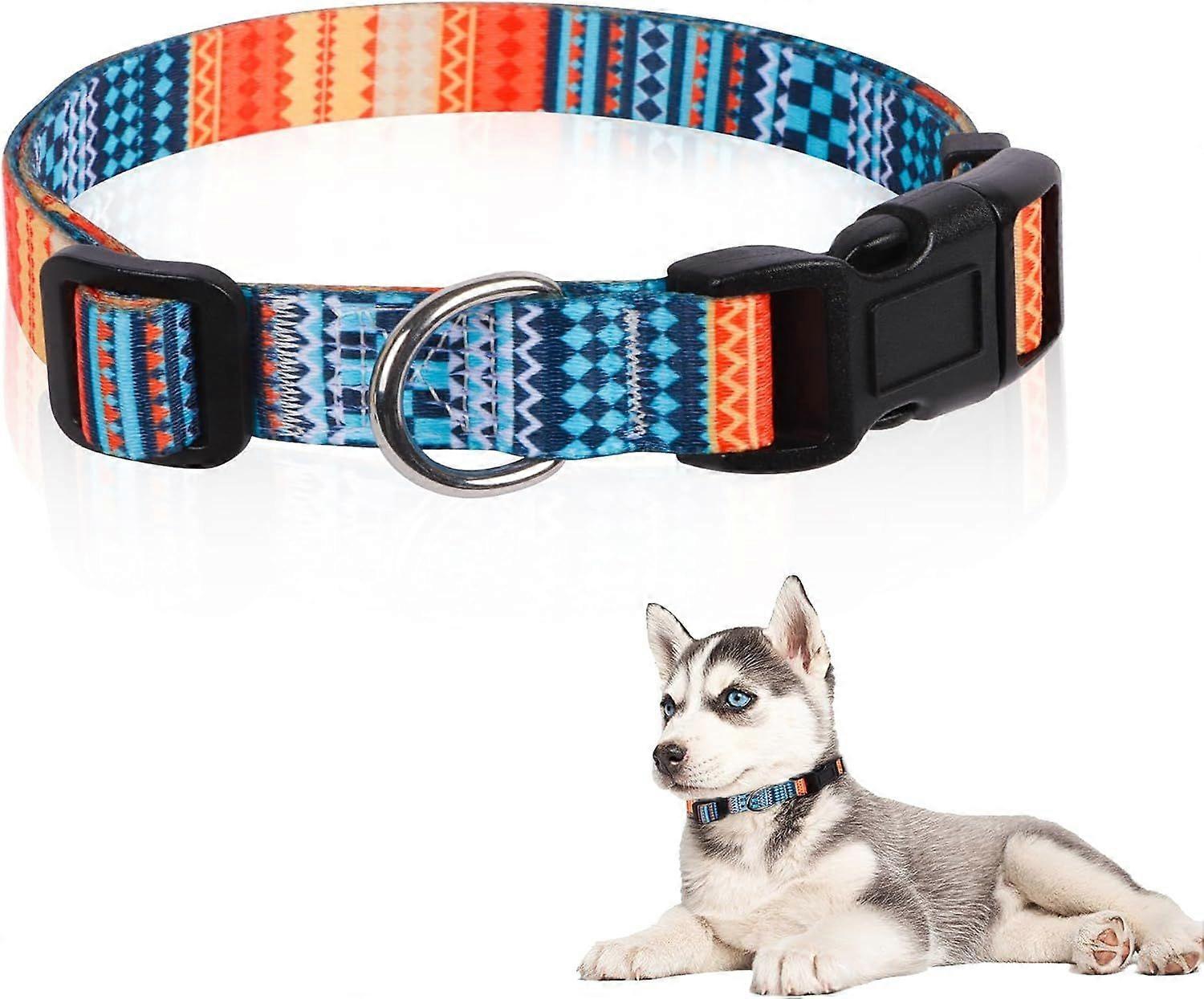 Adjustable Dog Collars for Large Dogs, Dog Collar with Bohemia Tribal Geometric Patterns, Pet Collar for Dogs Puppys Cats Kittens (L, Orange)