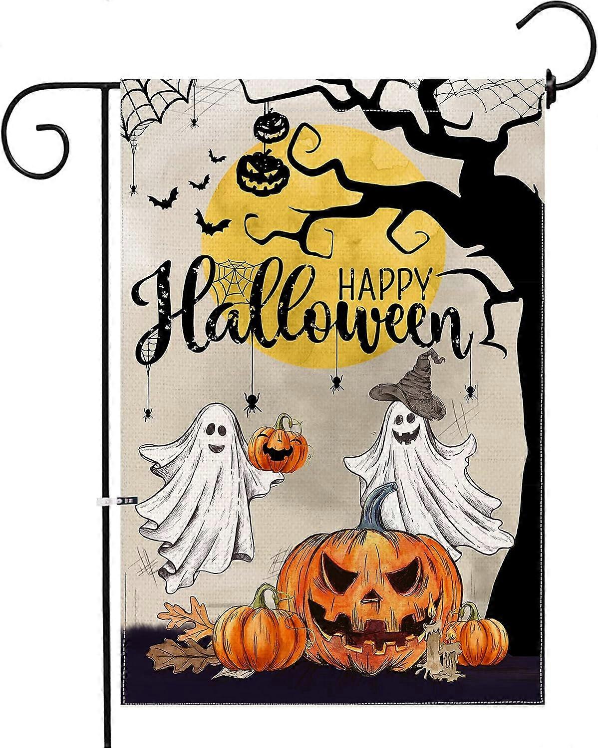 Halloween Garden Flags 12 x 18 Double Sided-Cute Garden Flag-Premium Burlap Halloween Flags(A)-Halloween Garden Flags 12 x 18 Double Sided-Cute Garden Flag-Premium Burlap Halloween Flags(A)-FLAG SIZE: This Happy Halloween Garden Flag is a small, mini garden size 12 x 18 inches ,30*45CM . Suitable for most standard-sized garden flag pole stand (Notice:The Stand Not Included and Accessories). PREMIUM QUALITY MATERIAL: This Halloween flag is made of a premium 2-layer burlap with the advantages of weather and UV/fade resistance. Double stitching panels on multiple rows ensures durability. EXCELLENT PRINTING PROCESS: Design is double-sided with the image printed, bright color, and full of Halloween favorites-ghost, bat, moon, pumpkin, and cobwebs. The Halloween flag will bring a festive atmosphere to your home. Yard decor: Personalize your yard, lawn, garden, or home entryway with this flag to create a scary and wonderful Halloween vibe. The Halloween yard flag is the perfect decorative flag to add to your yard and garden decor. VERSATILE USE-The Halloween garden flag can be used as a sign or as a gift to friends. The funny happy Halloween flag is just the right size for any space, like your front porch, yard, garden, patio, lawn, deck, lakeside, and even near your mailbox stand! It is a very funny greeting for friends visiting your home.