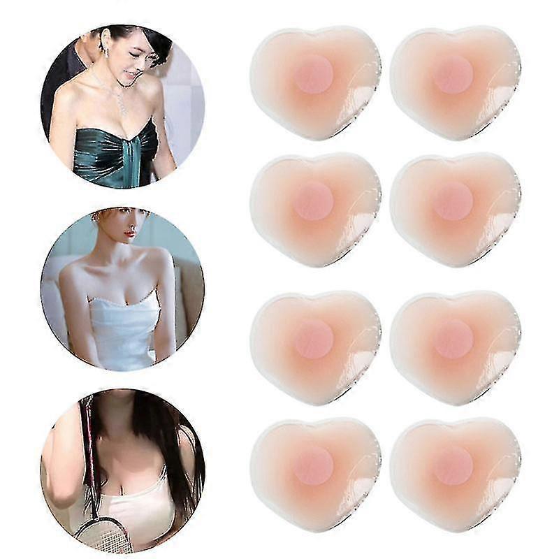 Nipple Covers, Silicone Nipple Cover Reusable Adhesive Thin Massagers Heart Nipple Patch, 4 Pairs