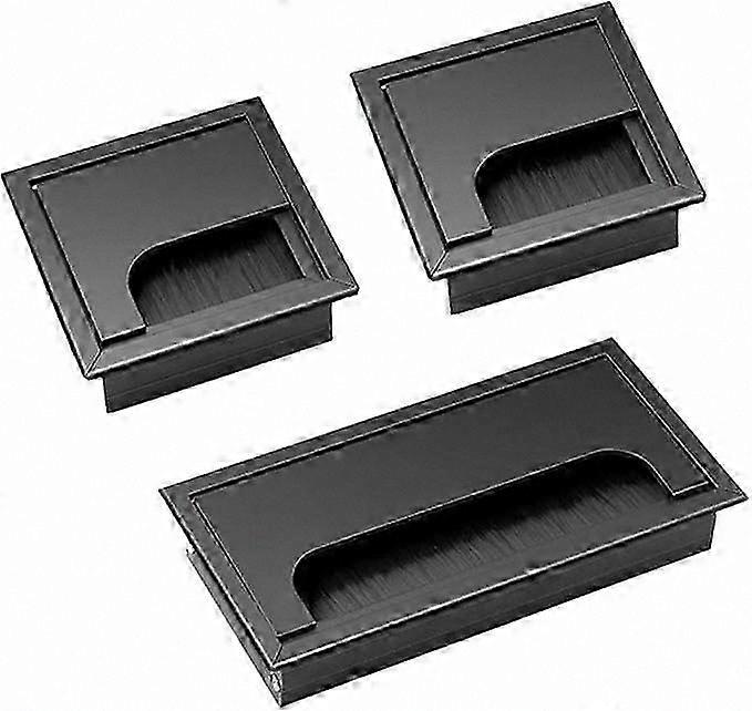 Black Square Cable Grommet Covers - 3 Pack Recessed Desk Cable Management Solution, Durable Metal Construction, Fits 80x80mm and 160x80mm Outlet Sizes