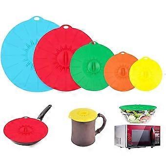 Silicone Lids, Microwave Food Covers Combo Lids With Suction Effect For Kitchen Pack Of 5